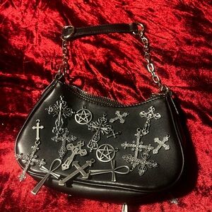 Edgy mini bag with silver cross embellishments. Perfect for a bold statement. Missing one cross