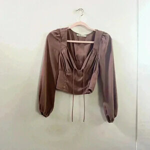Abercrombie & fitch satin brown blouse. Has a tie at the bust. Size XS. Excellent used condition