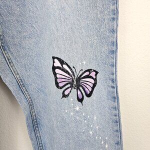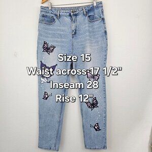 Sanrio Kuromi Butterfly Garden High Rise Mom Jeans Sz 15 Light Blue Wash Cotton