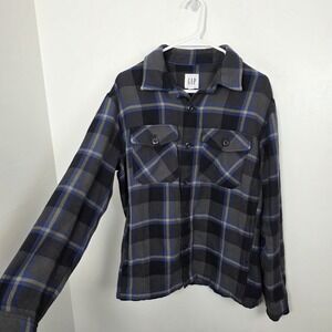 Gap Men's Gray Blue Plaid Relaxed Flannel Button Up Shirt Jacket Shacket Size S