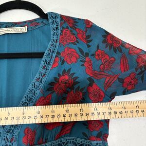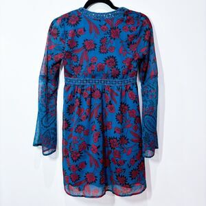 Features: Abercrombie & Fitch Babydoll Mini dress in Blue and Red Florals. Empire waist, Deep v-neck, partly sheer sleeves. Can be worn as a tunic top if desired.