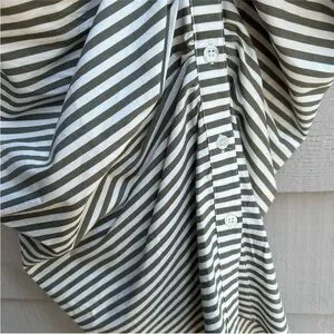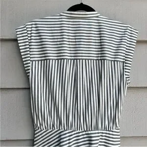Veronica Beard Ruched Striped Shirtdress White & Olive Green Size 8