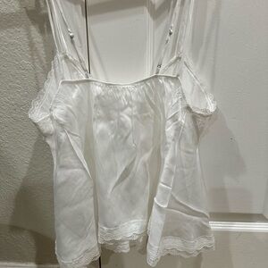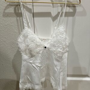 This elegant white lace camisole offers a delicate and feminine touch to your sleepwear collection. Perfect for a comfortable and stylish night in.
