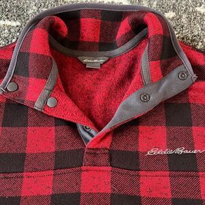 Eddie Bauer Flannel style quarter button up, size M for sale. This quarter button up is in great overall condition and is made of 100% polyester. Very soft feel, perfect for chilly summer nights!