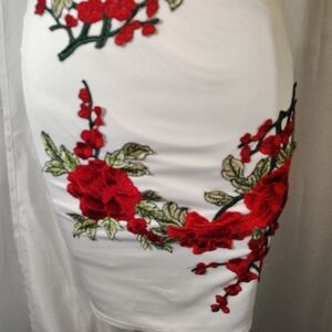 Fashion Nova TAG Sheath Dress, White Rose Spaghetti Strap, Drop Back, XS