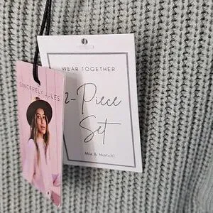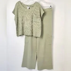 Sincerely Jules Sage Knit Set Wide Leg Pant wCargo Pockets Ribbed Sleeveless Top