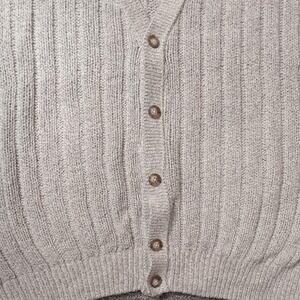 The Vintage Eddie Bauer Chunky Knit Button Down Cardigan Sweater in size XL is a stylish and cozy addition to any wardrobe. Made from cotton with a chunky knit style, this cream-colored cardigan features button accents and is suitable for both men and women. The XL size ensures a comfortable fit for those looking for a classic and versatile sweater option.