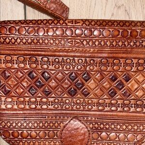 Vintage 1990’s Stylish brown leather crossbody bag with intricate detailing. Perfect for everyday use.