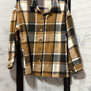 Womens Plaid Shacket XL Brown Oversized Flannel Jacket Cabin Boho Grunge Y2K