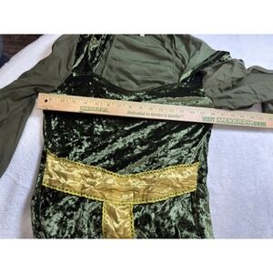 Sinastar Green Velvet Hooded Medieval Fantasy Costume Dress with Gold Trim M