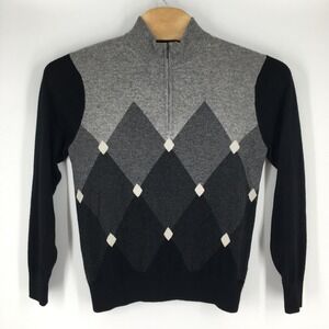 Bullock & Jones Mens MediuM Argyle Quarter Zip Sweater 100% Cashmere Gray Black