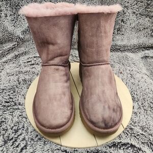UGG Bailey Bow II Purple/Shadow Leather Sheepskin Boots Women's Size 7