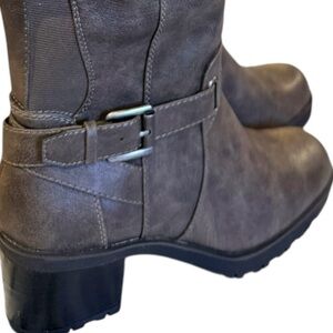 BareTraps Grey Knee High Riding Stack Heel Boots Tempist 6 NWT Faux Leather New