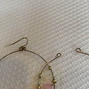 Gold Tone Pink and Orange Beaded Hoop Drop Statement Earrings