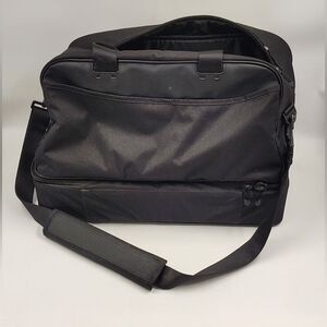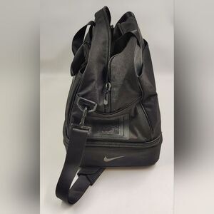 This multi-compartment Nike duffel bag in classic black features a striking Canada emblem. Perfect for gym sessions or travel, it combines style with functionality. In good preloved condition. Pls see all photo's Measures 18.5" x 12.5" x 10"