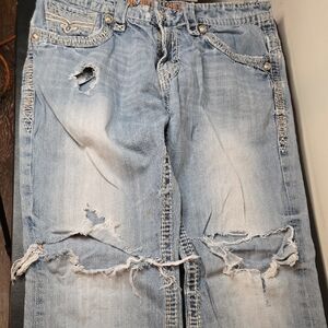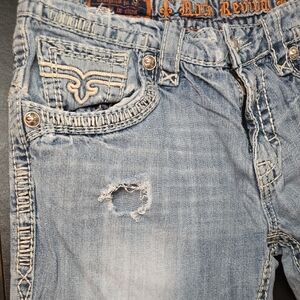 Rock Revival Boot Cut Ripped Jeans in Light Blue