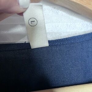 Grae Cove Frankie Linen Navy Blue Pocket V-neck Wrap Belted Midi Dress Large