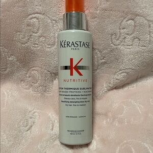 Kerastase Nutritive Lait Vital and Lotion Thermique Sublimatrice. Nourishing hair care duo. Enhances softness and shine.