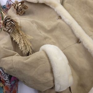 Charles Klein Luxurious Leather Tan and Cream Fleece Coat Size L
