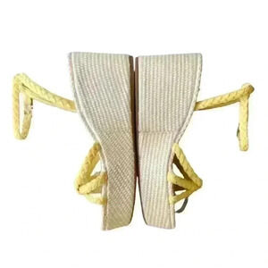 Antonio Melani Yellow Braided Leather Stacked Wedge Sandals 9.5
