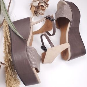Coclico Cream Tan Brown Platform Sandals Sz 36