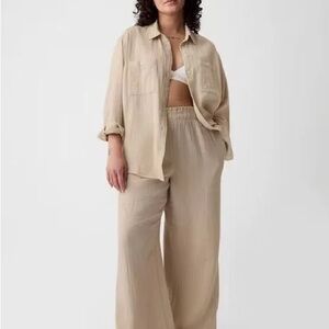 100% Cotton NWT Gap Beige Crinkle Gauze Wide-Leg Pants | Color: Tan