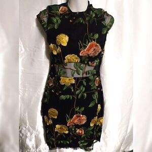 Agaci Floral Mesh Embroidery Bodycon Flower Short Sleeve Mini Dress M