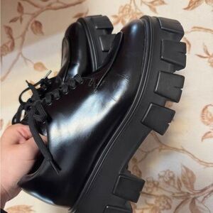 Sleek black loafers with a glossy finish. Stylish and versatile. Crafted by Prada.