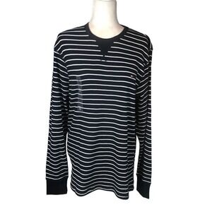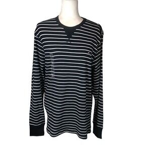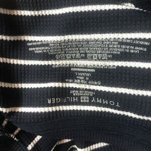 Tommy Hilfiger Mens L Striped Navy White Striped Waffle Knit Pullover Sweatshirt Preppy New