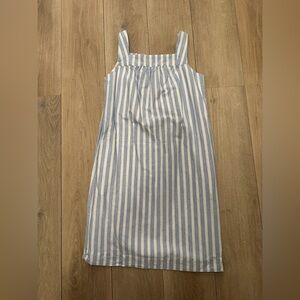 Adorable Joules summer sundress in fresh blue & white stripes. Sleeveless with wide straps, square neckline, and a relaxed A-line fit that flatters all shapes. Perfect for warm-weather outings, vacations, or layering with a cardigan.