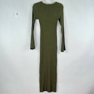 WAYF Cinthia Jewel Neck Long Sleeve Rib Midi Dress sz Large