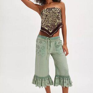 Free People Washed Perla Bloomers Pants Embroidered Drawstring Pull On XS