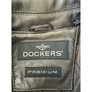 Dockers Premium Brown Leather Bomber Jacket Mens LARGE #1-0167