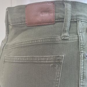 Madewell 10" High-Rise Skinny Jeans: Raw Hem Garment-Dyed Edition Olive Size 27. 24" inseam. Excellent quality. No stains no fading no rips no holes. Superb condition. Please see photos for details.