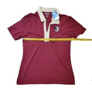 Florida State Seminoles Garnet & Gold Collared Top Size L New. Tag says XL but measures closer to a L. Officially licensed product. Measurements are in photos. See photos. Clothes sizes vary. You may want to measure a similar piece you own and compare it with the measurements in the photos.