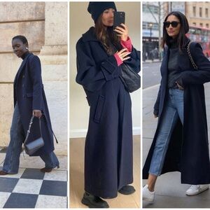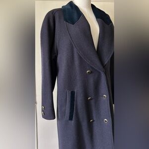 Vintage Navy Wool With Velvet Accent Classic Old Money Full Length Overcoat