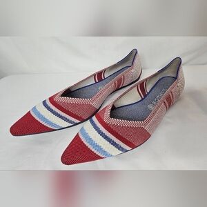 Rothy's RARE UNICORN The Point Varsity Stripe Pointed Toe Knit Woven Ballet shoe