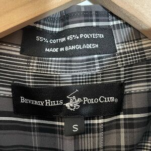 Beverly Hills Polo Club Men's Size S Casual Short Sleeve Black Gray Plaid Shirt