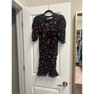 Zara Black Floral Ruched Mini Dress with Sleeves size S