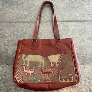 Vintage Turkish Wool Kilim Leather Camel Shoulder Bag Purse Brown Boho Artsy