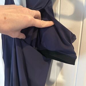 Chic navy backless dress. Perfect for stylish outings. Flattering and versatile.