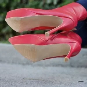 Red Pointy Toe Heel Boots for Women Side Zipper Pull On Style