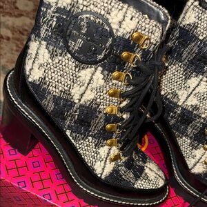 Tory Burch Black and Cream Lace-Up Boots