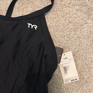 Stylish black swimwear by TYR. Features sleek design and comfortable straps.