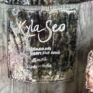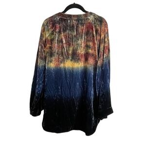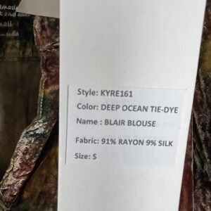 Beautiful Kyla Seo "Blair" blouse (style KYRE161), size S. Luxurious velour in a "Deep Ocean" brown-green and blue tie dye. Effortlessly boho and artisan-inspired—perfect for festival, travel, or relaxed luxury styling.