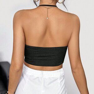 Black Sexy Women's Concert Draped Front Backless Party Halter Top