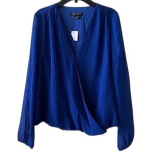 CURATED WORK-TO-WEEKEND BUNDLE: MOD REF Rose Top (L) + Banana Republic Blue Wrap (M) + ZARA Black Striped Pants (L)