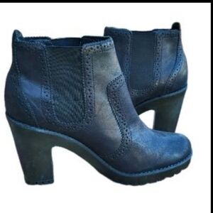 Sperry Topsider Claremont Black Leather Chelsea Ankle High Heel Chunky Lug Boot Bootie Shoe Women 8.5