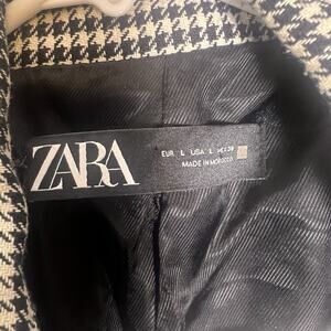 Zara Womens Houndstooth Double Breasted Blazer Sz L White Black Office Career