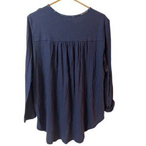 👚ℹ Lucky Brand long sleeve top featuring a rich navy blue base with a boho-inspired floral and geometric print down the front.